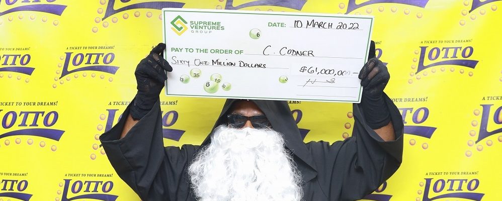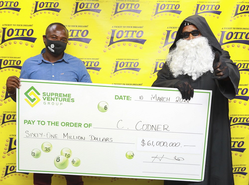 After playing the same numbers since the start of Lotto more than 20 years ago, C. Codner has finally reaped the benefits after hitting a $61-million jackpot and receiving his winnings from Supreme Ventures.