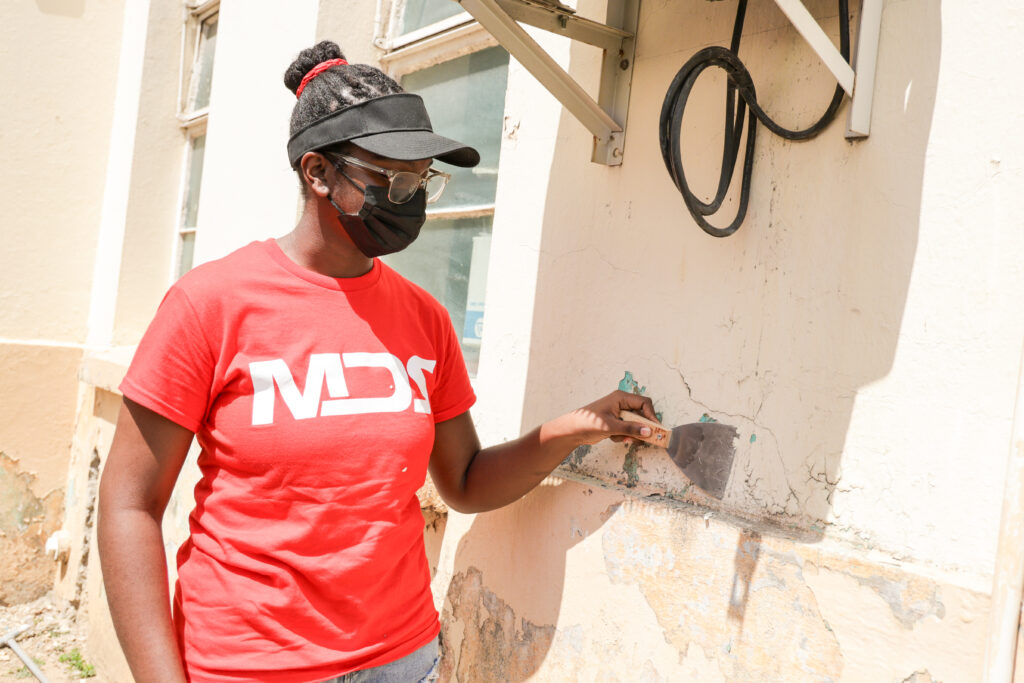“My mother always shared the story of her own experience at KPH. She almost lost her life and limb after an accident, and KPH saved both. She became a registered nurse, and I followed suit. On my weekends, I am a sessional nurse here and so, I wanted to be here today to beautify the area so that when patients come in, and I come in, I see a nicely painted area that I contributed to,” shared Deidre-Ann Gordon, brand manager at MDS and Labour Day project lead.