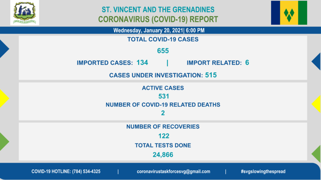 As at 6:00 pm Wednesday, January 20, St Vincent had confirmed 53 new cases of COVID-19, a meagre two being the only imported instances, yet no recognition of a widespread outbreak, outside of naming clusters.