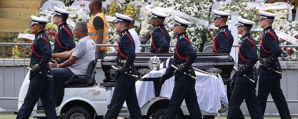One of Tuesday’s most moving moments came when the firetruck bearing his coffin halted outside the home of Pele’s 100-year-old mother. Crowds there applauded and chanted “Pele is our king,” before holding a minute’s silence.