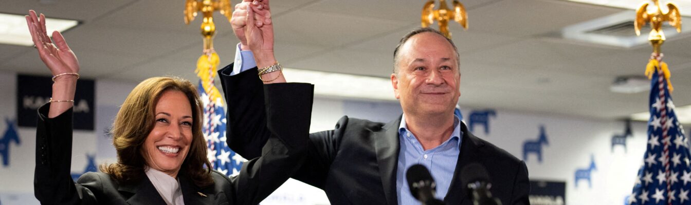 Harris’ husband, Doug Emhoff, remains cheerleader-in-chief.