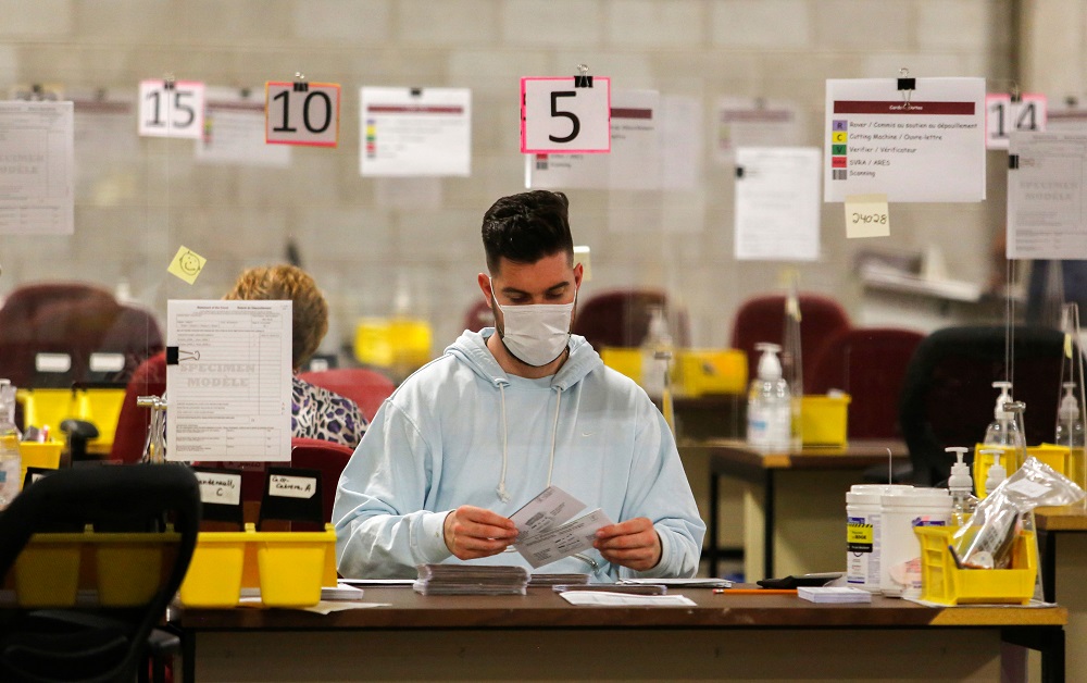 Elections Canada will not start counting roughly 800,000 mail-in ballots until Tuesday, after it is able to verify them against in-person votes. Those could help to determine the outcome in at least two Atlantic districts and many more across Canada.