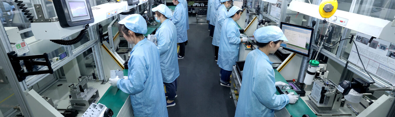 Workers work on a production line manufacturing smart automotive central control navigation products at a factory of Beidou Intelligent Connected Vehicle Technology Co. (BICV) in the High Tech Industrial Development Zone in Suqian, Jiangsu Province, China April 9, 2025. (Photo: China Daily via REUTERS/File)