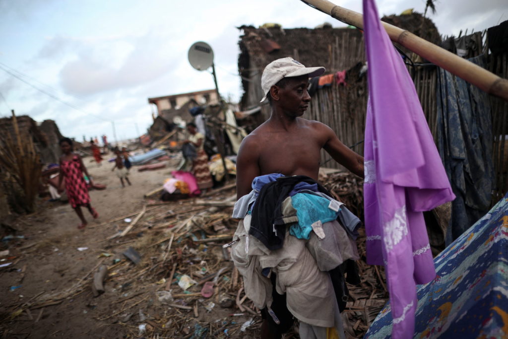 A local gathers his clothes, in the aftermath of Cyclone Batsirai, in the town of Mananjary, Madagascar, February 7, 2022. (Photo: REUTERS/Alkis Konstantinidis)