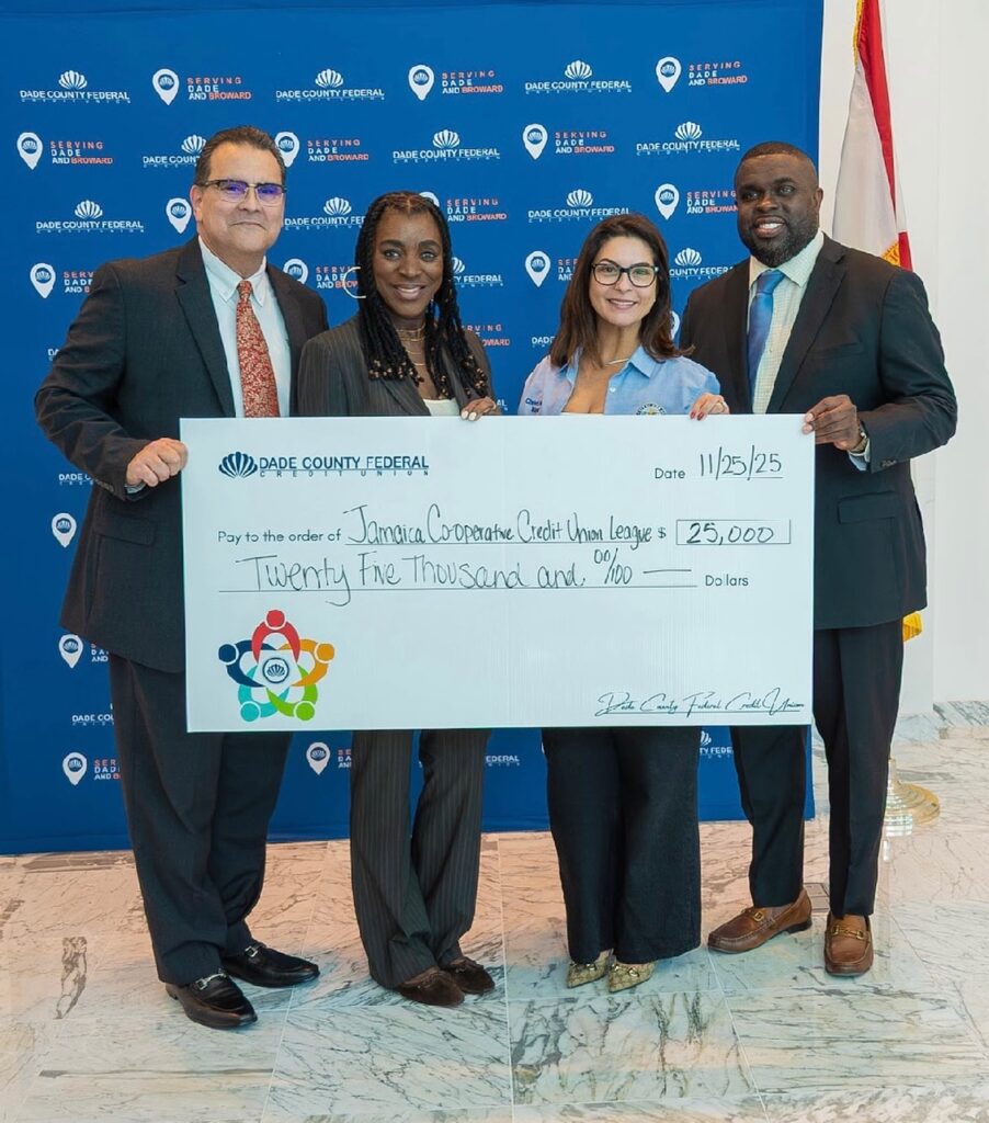 Dade County Federal Credit Union (DCFCU) reaffirmed its longstanding commitment to community and international solidarity with a US$25,000 check presentation in support of Hurricane Melissa relief efforts in Jamaica.