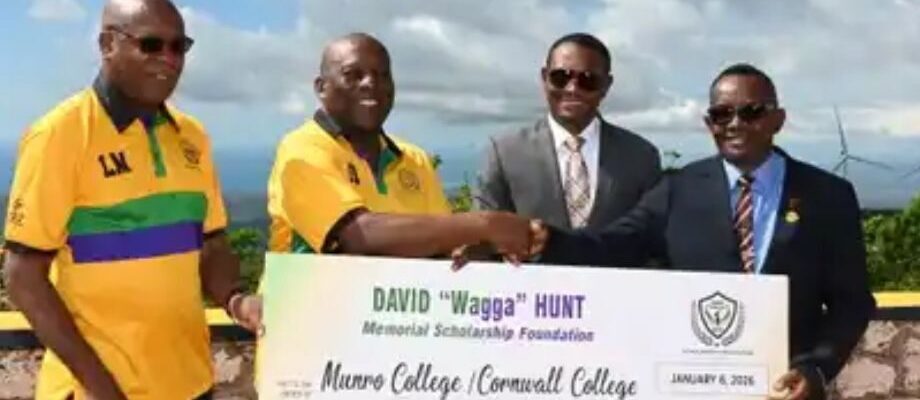 The David ‘Wagga’ Hunt Foundation (DWHF) presented checks totalling US$10,000 to Munro College and Cornwall College.