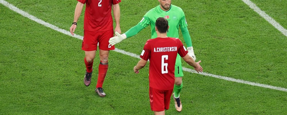 Denmark thought they should have had a penalty in stoppage time for handball that was checked at the VAR screen by referee Cesar Arturo Ramos, but he instead gave a free kick to Tunisia.