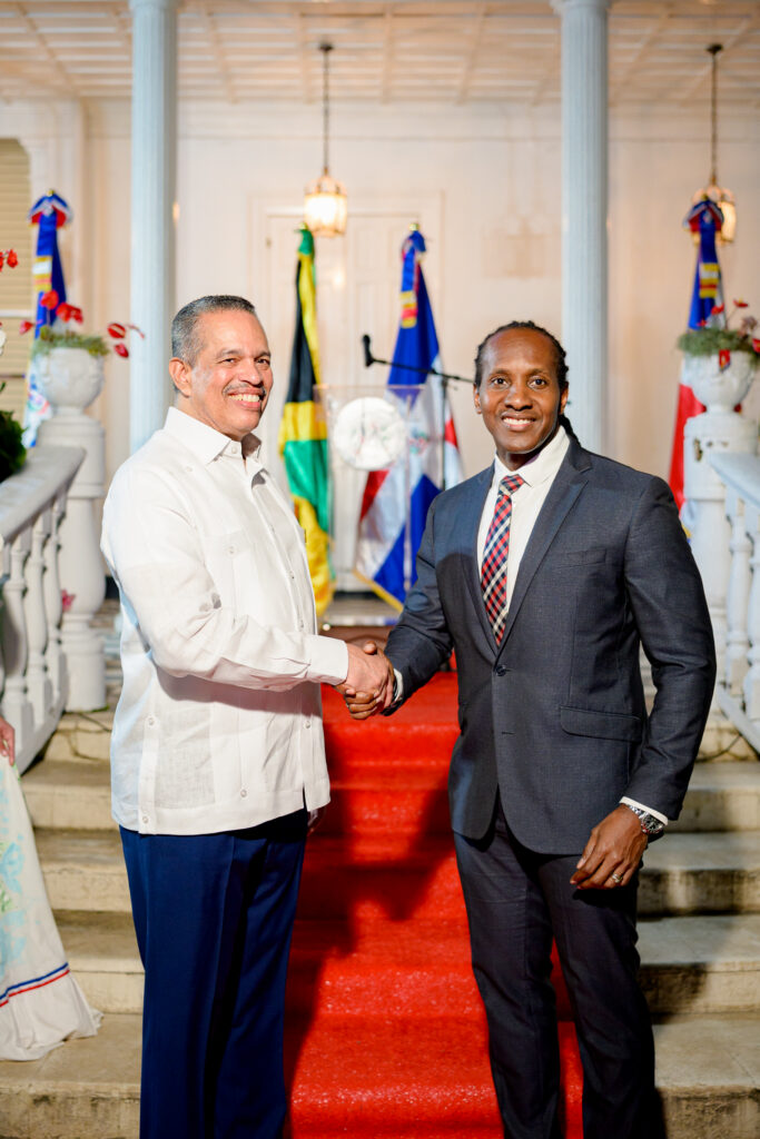 Dominican Ambassador to Jamaica, Manuel Durán, welcomed guests at Devon House, which was illuminated in the colours of the Dominican flag for two consecutive days as a symbol of friendship between Jamaica and the Dominican Republic.