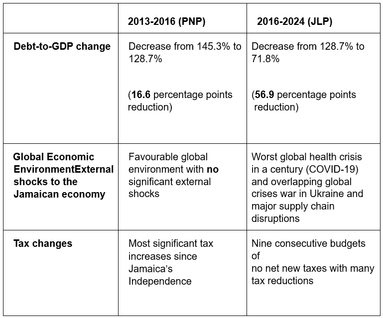 Contrast this with only a 16.6 percentage point reduction achieved by the PNP government during 2013-2016 despite there being no significant external shocks to the economy.