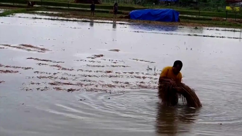 Television channels showed footage of rice paddy crops submerged or washed away and flooded rivers sweeping away bridges, roads and houses.