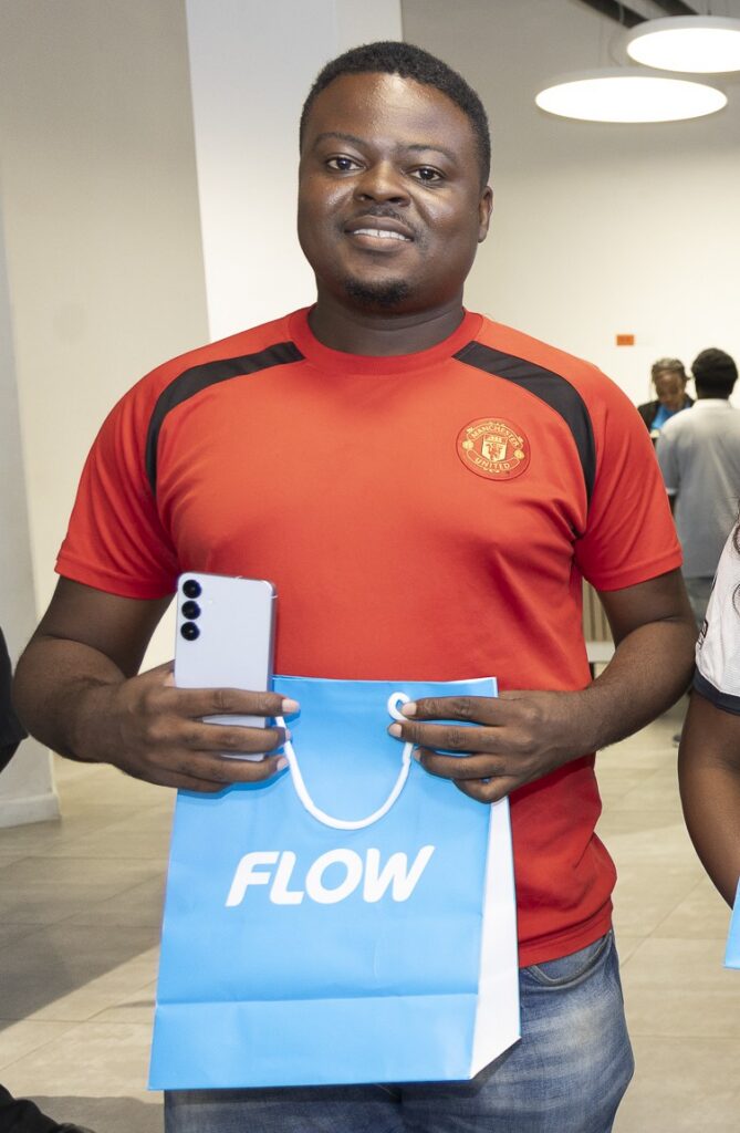 While celebrating its performance recognition, Flow used the day to treat its customers—current and new ones. Kandice Lecky, a Flow postpaid customer whose phone was recently damaged, was pleasantly surprised when she was randomly selected for a complimentary Samsung S25 upgrade. The unexpected gesture turned what had been a frustrating process of using her phone into a pleasant digital experience.