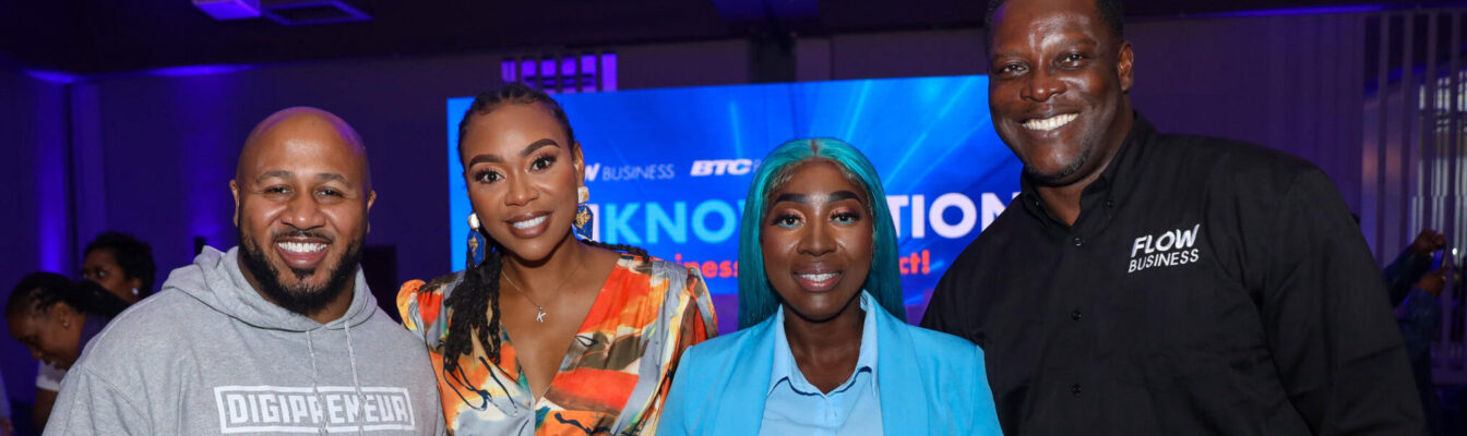 Reading Time: 2minutesVice President and General Manager of Flow Jamaica Stephen Price (right) is joined by (l-r) digital strategist and brand ambassador for Flow Business Keron Rose, motivational speaker Krystal Tomlinson and InKnowvation keynote speaker Grace Hamilton.