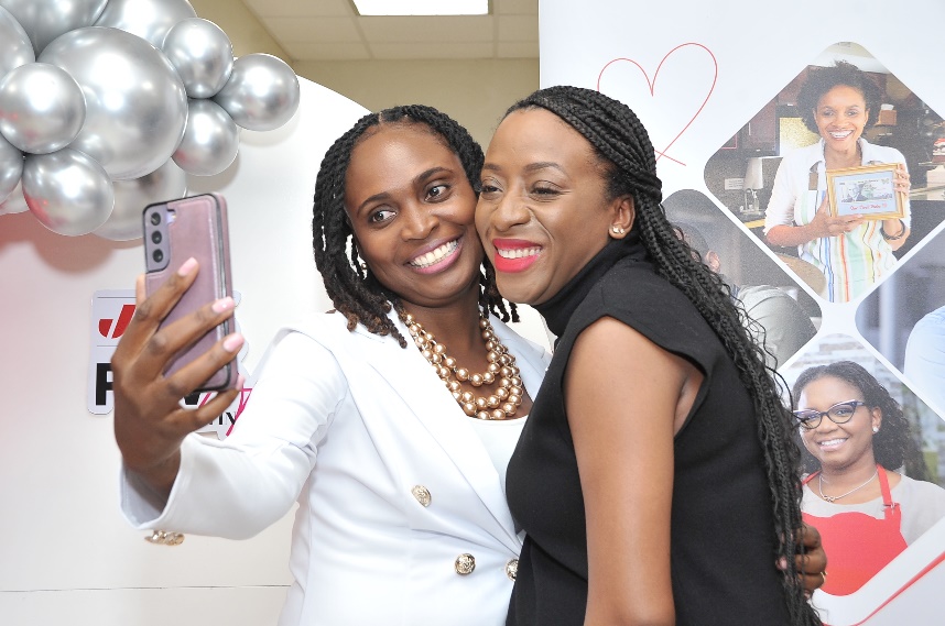 Jannel Alexander-Reid (left), founder and principal director of Institute of JAR and Daenia Ashpole of Day & Night Beauty Ltd. get cozy for a selfie moment at the recent JMMB PowHerful Women in Business graduation exercise which took place at the JMMB Group’s New Kingston office. (Photo: Contributed)