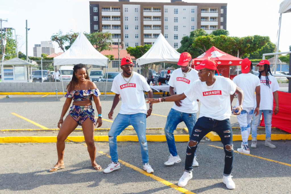 Revellers galore descended in New Kingston where friends stopped to cool down with Smirnoff cocktails, take selfies and have fun conversations about the day so far.