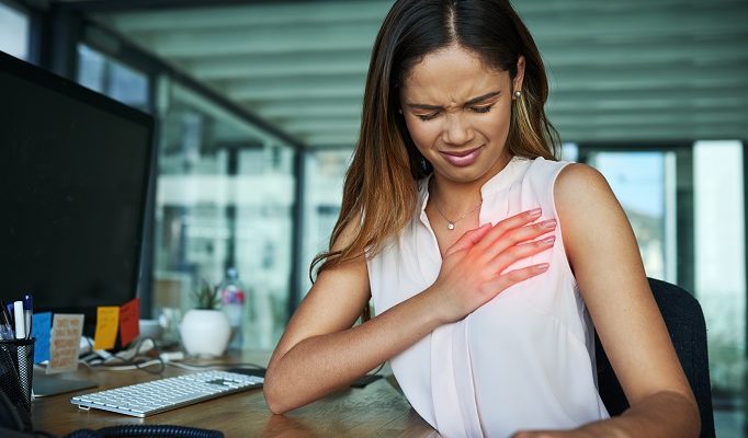 Heartburn, as the name suggests, is a burning pain in the chest area, just behind your breastbone. The pain is often worse after eating, in the evening, or when lying down or bending over.