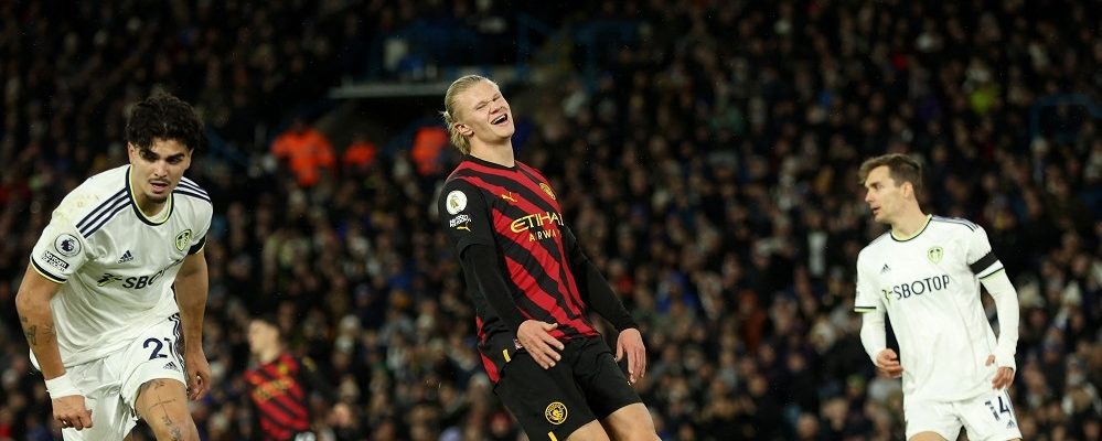 The visitors had a host of chances in the first half, with Haaland twice denied by fine saves from home goalkeeper Illan Meslier, while England forward Jack Grealish blazed two efforts over from good positions.