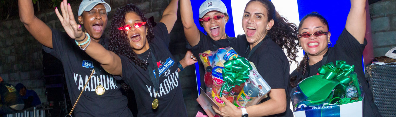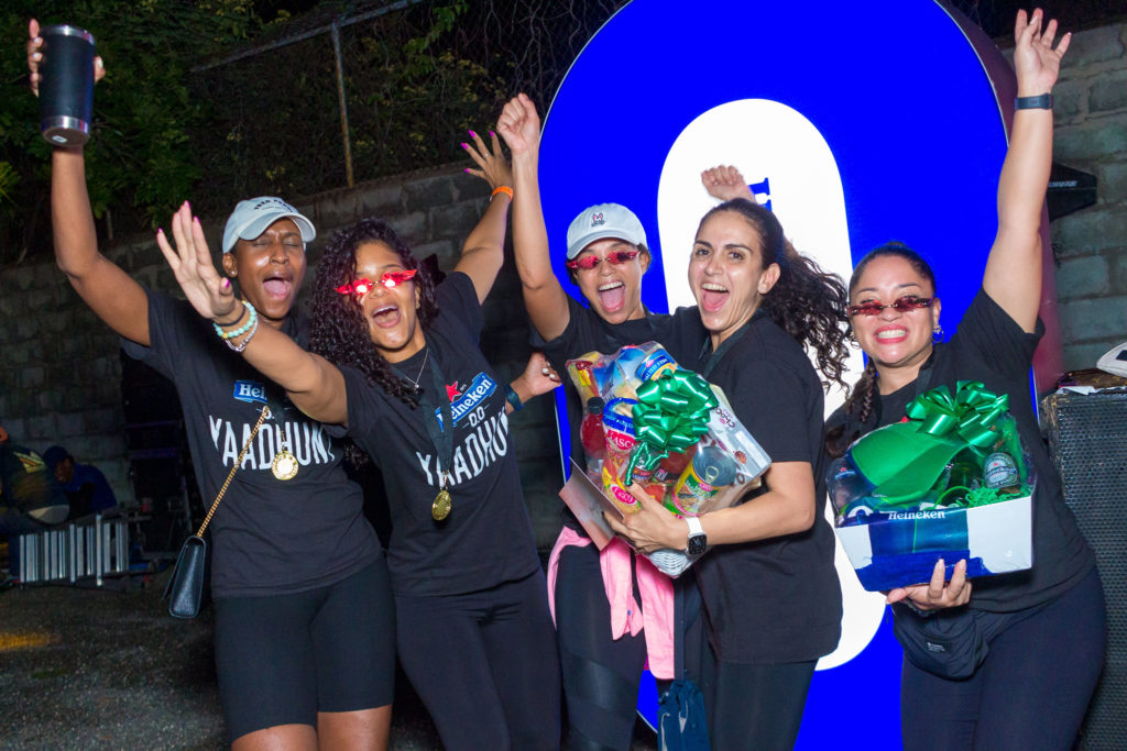 From left: Beatriz Heras, Tamara Hoyle, and Petiteen Williams-Cheeks raced to the stage after hearing that team ‘Hot Pursuit’ won first place in the Heineken 0.0 Yaad Hunt.