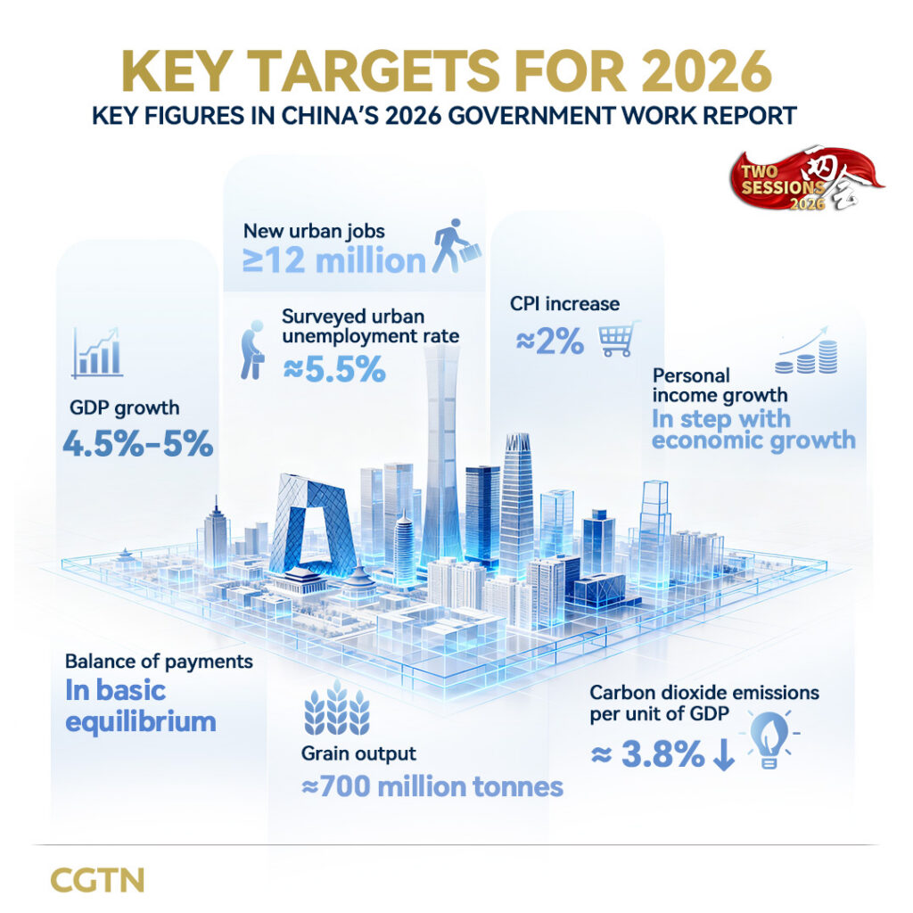 Delivering a government work report at the opening meeting of the NPC session, Premier Li Qiang announced that China targets an economic growth of 4.5% to 5% in 2026 and will strive for better in practice.