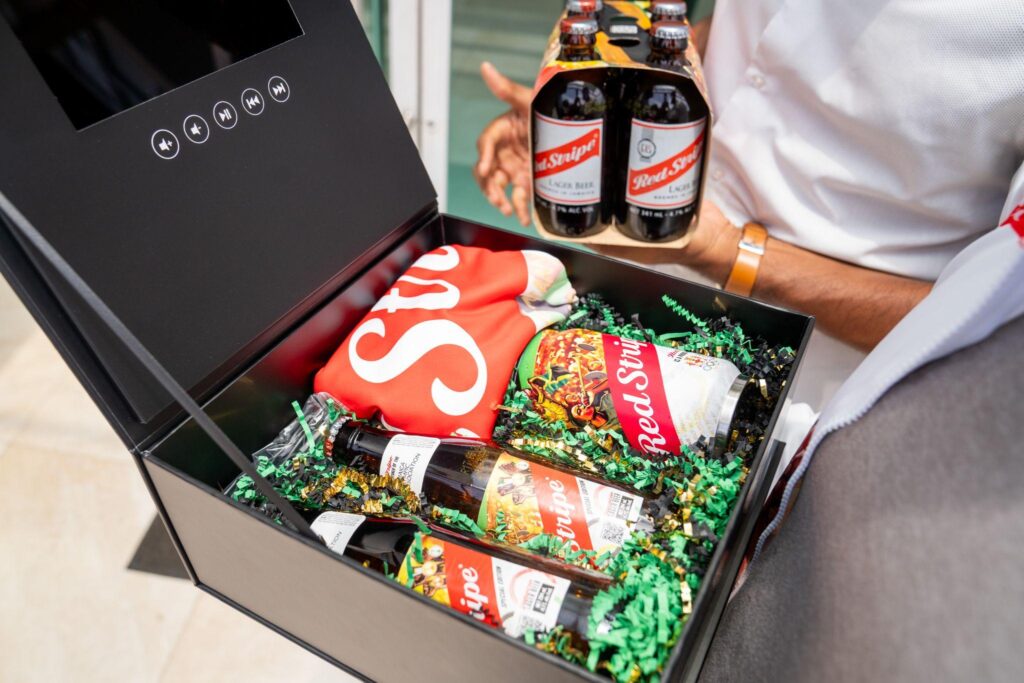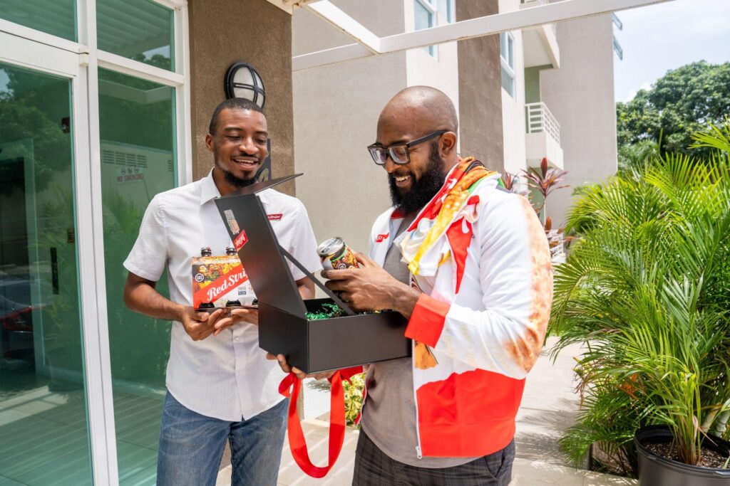 “I am elated to see my design associated with the legendary Usain Bolt and beer giant, Red Stripe. Holding the items in my hand is the best feeling. My design is the collective celebration of Jamaicans eagerly anticipating their athletes’ dominance in the upcoming Olympic Games,” Hammond shared after being surprised with the package.