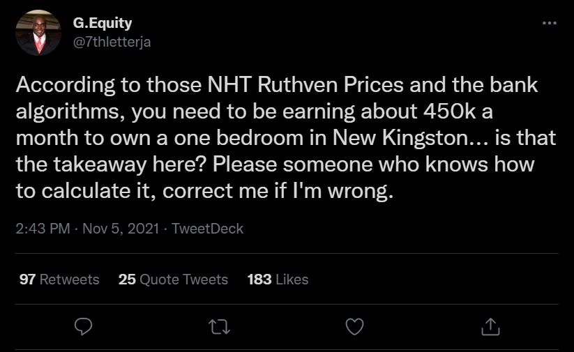Jamaicans on Twitter are still seemingly unable to process the staggering prices announced by the State-operated National Housing Trust (NHT) for units on sale at its Ruthven Towers complex in St Andrew.