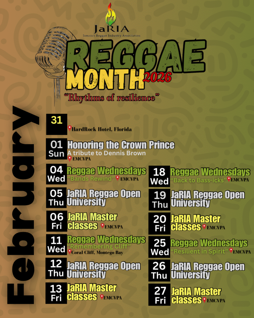 This is being done in partnership with the Dennis Brown Trust. JaRIA is celebrating 17 years of advocacy and service to Jamaica’s creative community under the theme “Rhythms of Resilience,” through a series of events marking Reggae Month 2026, scheduled to run from January 31 to February 27, 2026. This year’s theme reflects the unwavering determination of Jamaica’s cultural practitioners to continue creating, uplifting communities, and driving national inspiration, even amid ongoing financial challenges and post-hurricane recovery efforts affecting the creative industries.