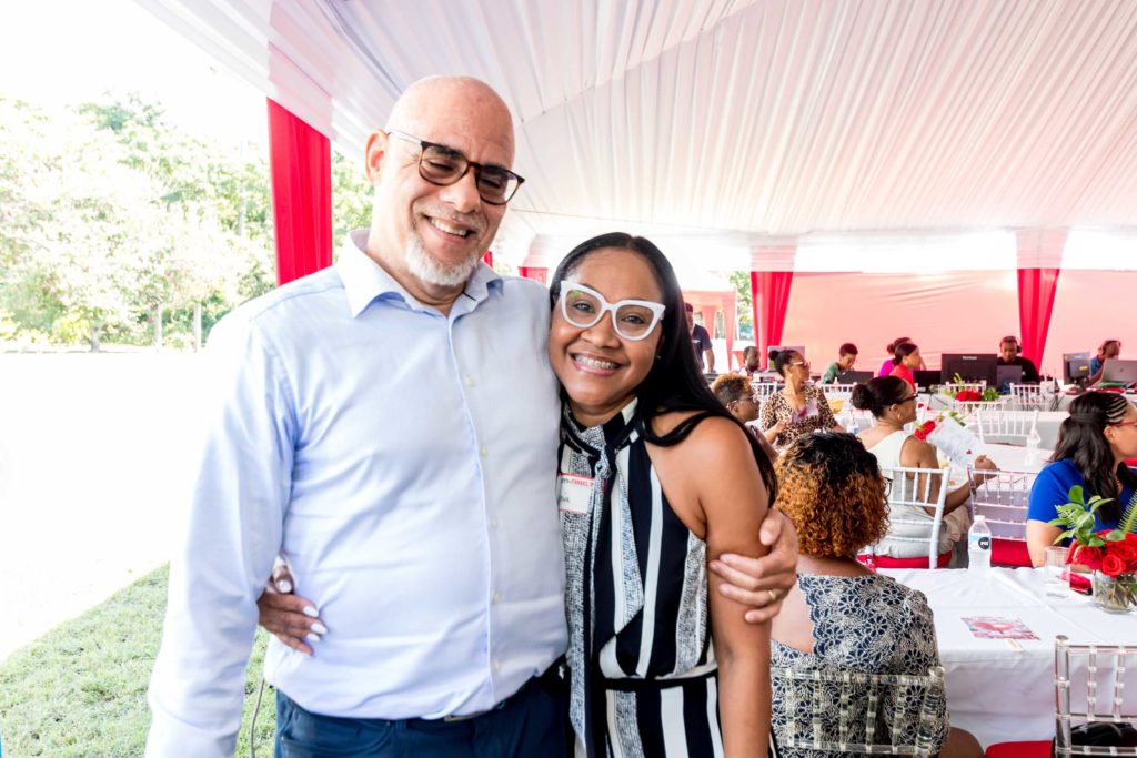 JMMB Group CEO Keith Duncan (left) and Fornia Young, general manager, client partnership at JMMB Investments share a hug during the recent Thanksgiving Service held at Hope Gardens, to kick off the Group’s 30th anniversary celebration. (Photos: Gabre Cameron)
