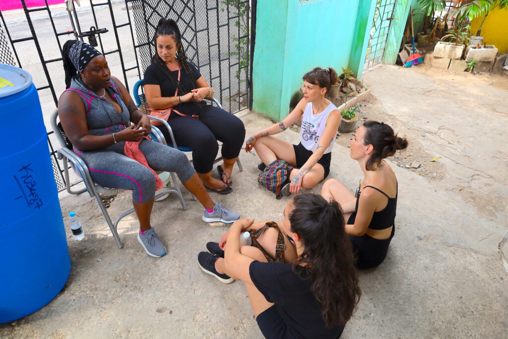 I had the opportunity to join the 10-day expedition for one day, and I was amazed at what I saw. One of the dance classes took place in a lane in an open-air setting where community activities such as men hanging by the outdoor bar and playing dominoes and women’s hair braiding were ongoing. Chickens were running around in the background. It was in the heart of Kingston’s streets.