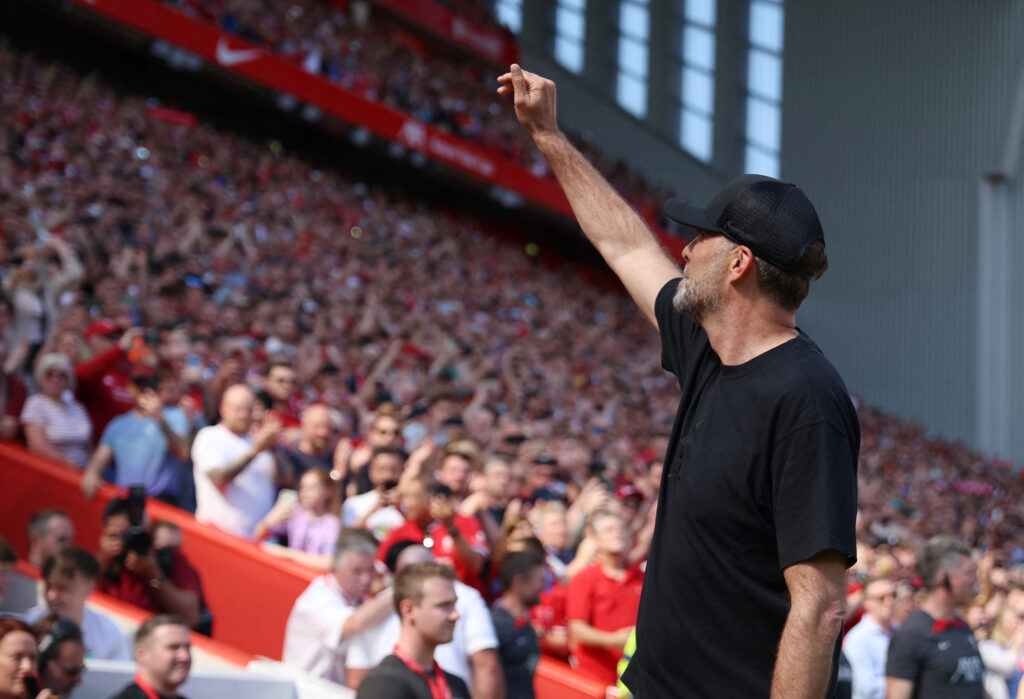 If Liverpool’s pre-game singing of “You’ll Never Walk Alone” — the song by 1960s Liverpool band Gerry and the Pacemakers that became the club anthem — raises goosebumps most games, the Anfield crowd sang at the top of their lungs on Sunday while Klopp raised a hand to his heart.