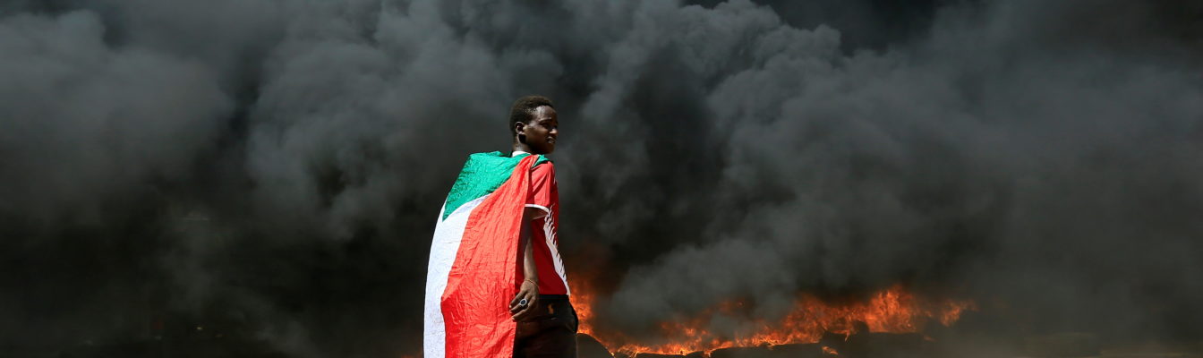 Plumes of smoke could be seen across Khartoum as protesters burned tires and waved Sudanese flags.