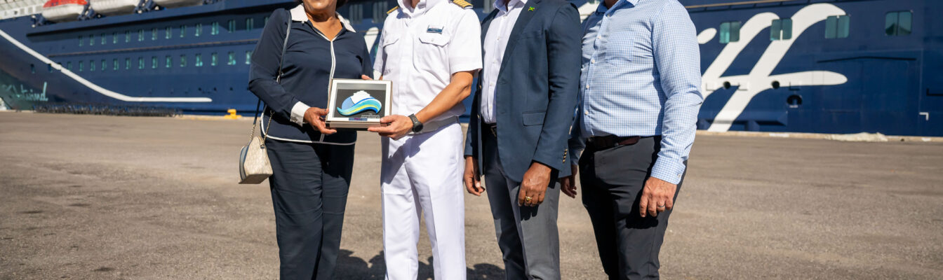 Ian Dear, chairman of the Tourism Product Development Company Limited (TPDCo) and member of the Tourism Recovery Task Force, was among a party which recently welcomed Captain Georgios Dimou and his crew of 1,000 on the arrival of the German cruise ship.