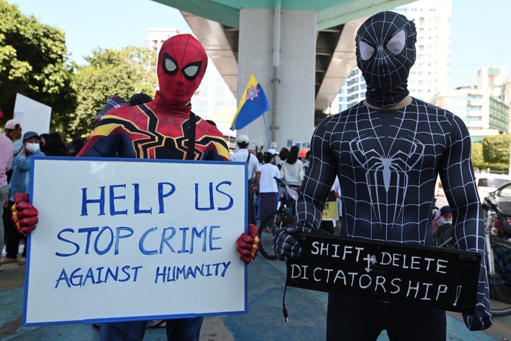 Spidey Htoo said he wore the superhero costume at protests to stay out of trouble amid a wave of arrests after the coup.