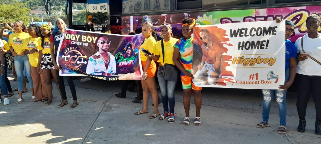 Rising musical star Nigel Hector, aka Nigy Boy, received a jubilant welcome home on his arrival at the Sangster International Airport (SIA) on Thursday (February 15), facilitated by MBJ Airports Limited for the Flanker-born son of St James who is now blazing a musical trail internationally.
