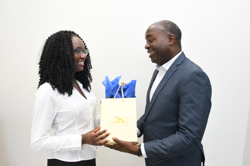 Jadyn went on to win the Union of Jamaican Alumni Associations Essay Competition last year, which earned her a prize trip to Jamaica. During her visit, the now 18-year-old recently paid a courtesy call on Hugh Miller, acting general manager of the JN Financial Group, at the JN Group corporate offices.