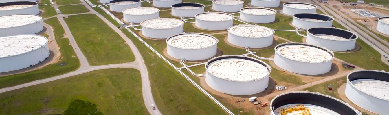 Crude oil storage tanks are seen in an aerial photograph at the Cushing oil hub in Cushing, Oklahoma, U.S. April 21, 2020. (File Photo: REUTERS/Drone Base)