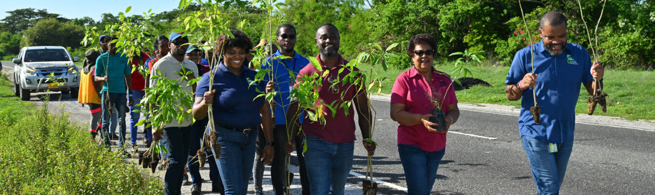 Volunteer groups and Portmore residents joined with the Forestry Department to plant yellow and pink poui trees and fruit trees, including mangoes, breadfruit, ackee and soursop to beautify the area, while providing much-needed shade and cooling, to benefit the nearby communities.