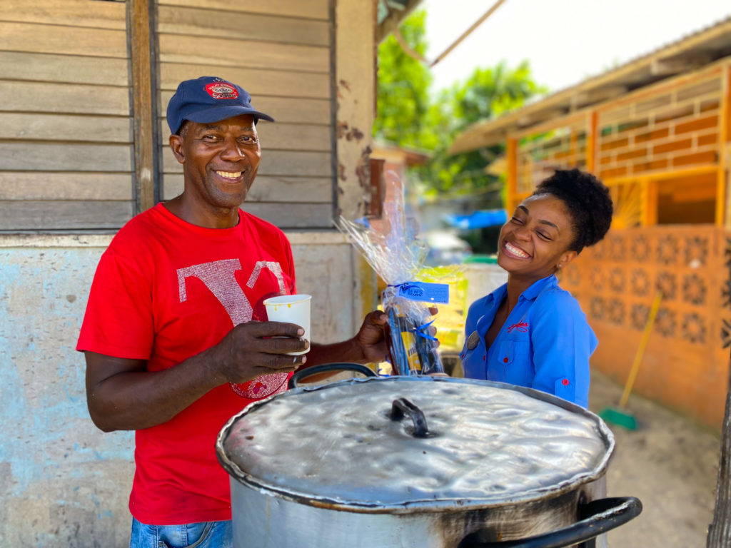 Soup vendor in Green Island, Hanover, Elsworth Foster matched Beaches Negril Junior Sales Executive, Asheika McNab’s energy; handing her a cup of soup as a sign of appreciation for his International Men’s Day treat.