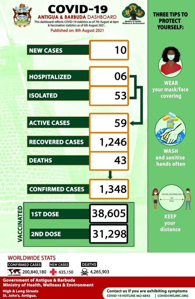 Some 38,605 first doses have been administered in Antigua and Barbuda, while 31,298 persons have been fully inoculated, according to health ministry data.