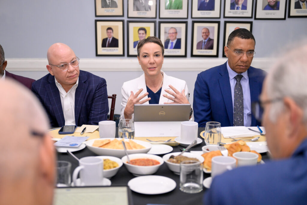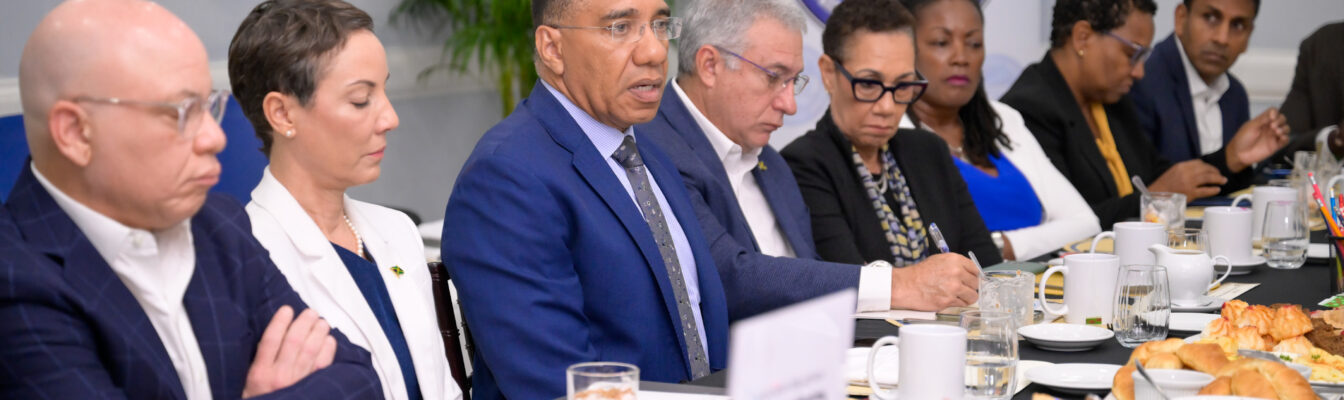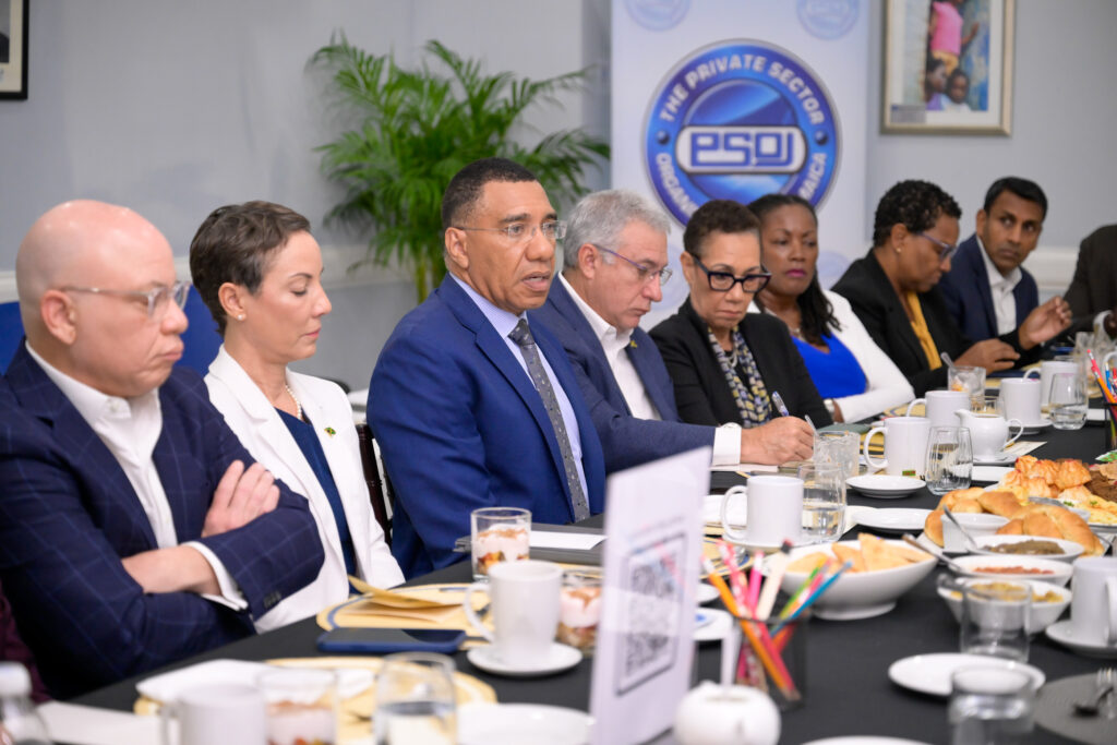 He was joined by Minister of Foreign Affairs and Foreign Trade Senator Kamina Johnson Smith, and other government officials for the Private Sector Organization of Jamaica (PSOJ) Partners’ Circle breakfast meeting at the PSOJ headquarters in Kingston.