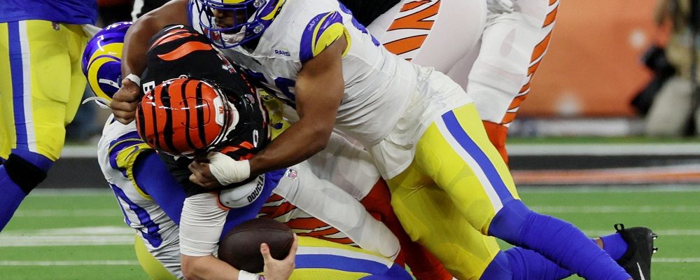 Cooper Kupp caught two touchdowns including the game winner from Matthew Stafford with 1:25 left in the fourth quarter, and Aaron Donald wrapped up Bengals quarterback Joe Burrow to seal the win.
