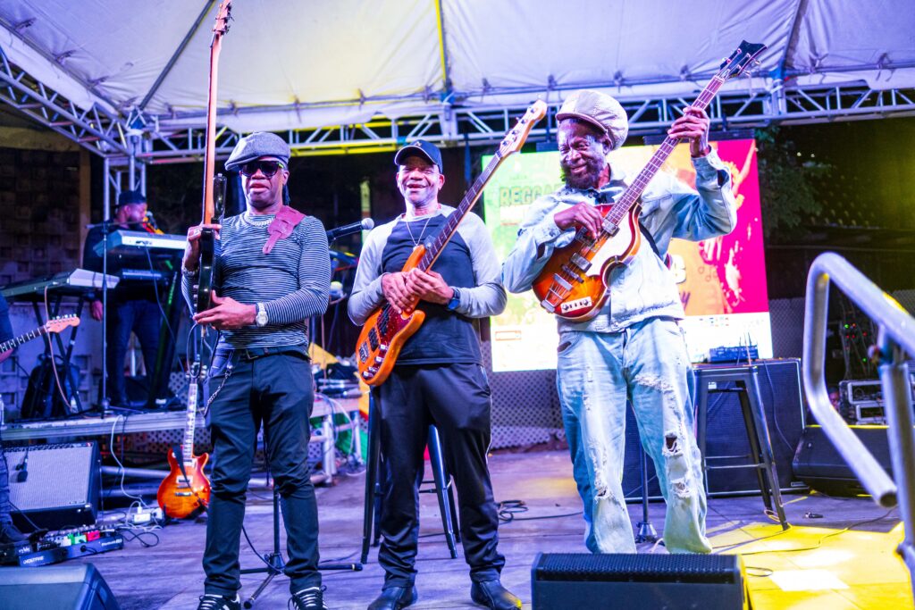 With patrons seated in the amphitheatre, enjoying a clear view of the stage and waiting in eager anticipation, the first trio of bass legends set the tone for a night of pure musical excellence. Taking the stage shortly after 7:00 pm were Errol “Flabba” Holt, Donald “Danny Bassie” Dennis, and Daniel “Danny Axeman” Thompson.