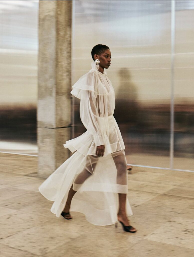 Tomiwa jetted in from New York for her bookings for Akris and Shiatzy Chen, the latter designer drawing inspiration from the 1970s era of music and culture in Taipei, Taiwan, for her ready-to-wear collection.