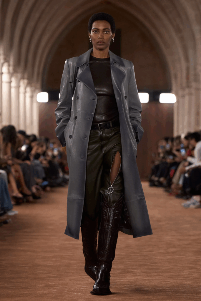 Newman showed up in Look 20 for Swedish brand Acne Studios’ latest by its creative director Jonny Johansson, which was hosted beneath the 13th-century arched hallways of the Collège des Bernardins on the third day of preview collections showcase.