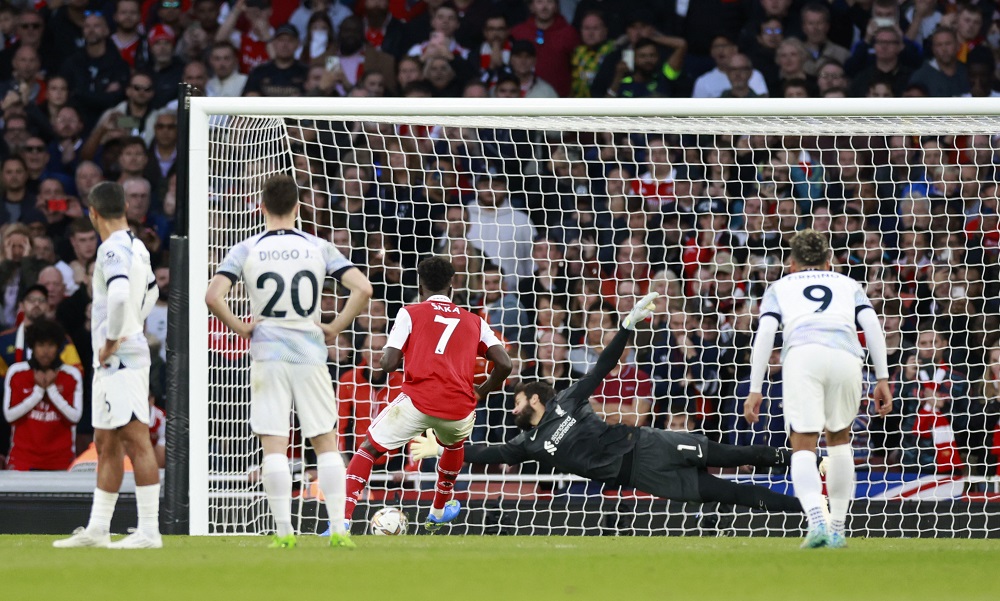 Arsenal winger Bukayo Saka scored twice, including a late winning penalty, as the hosts beat Liverpool 3-2 in a pulsating Premier League clash to send the Gunners back to the top of the table at the Emirates Stadium today (October 9).