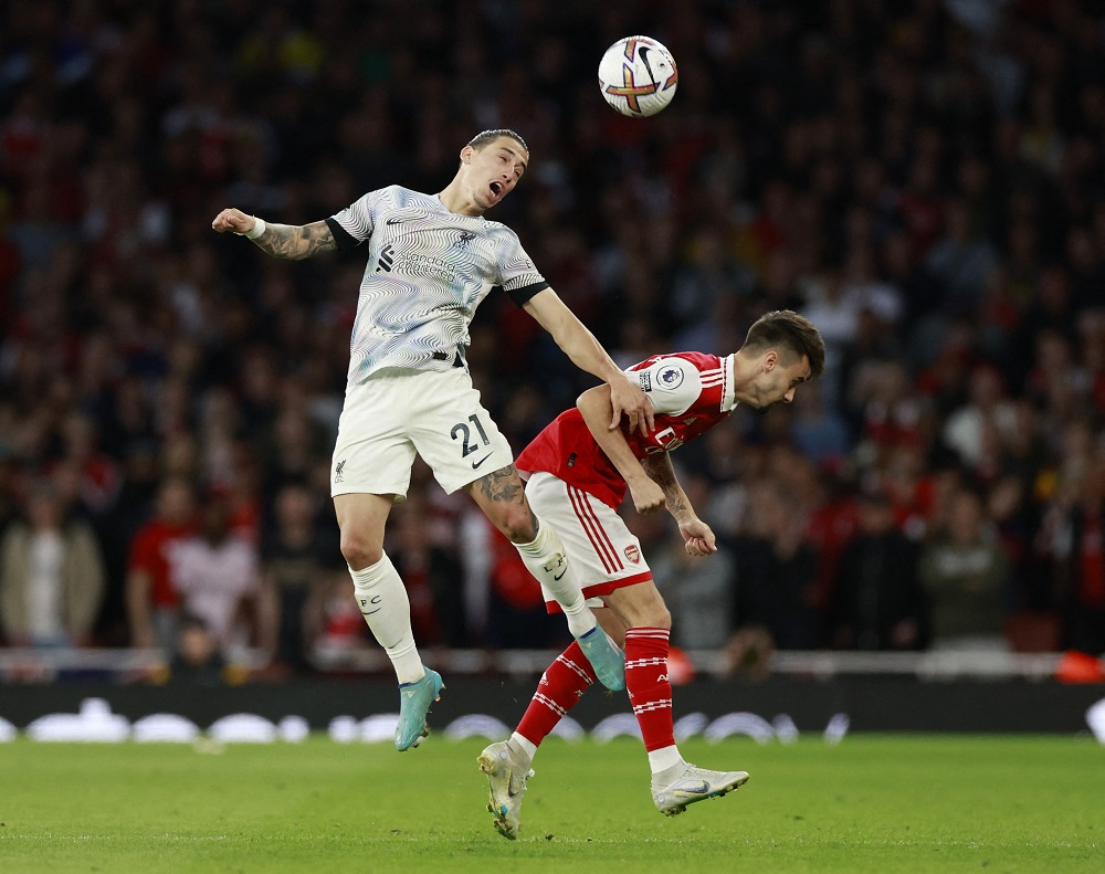 Arsenal opened the scoring after 58 seconds, Gabriel Martinelli sweeping home a perfect pass from captain Martin Odegaard, but Liverpool grew into the game and Darwin Nunez levelled in the 34th minute.