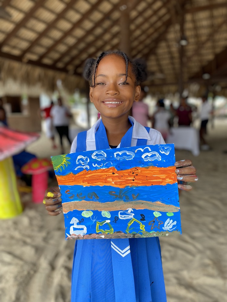 A smiling Mitali Thorpe from Broughton Primary School was more than excited to complete her painting and shared that she was happy to show the rest of her classmates what she had learnt on World Oceans Day from the Beaches Negril and Sandals Negril team.