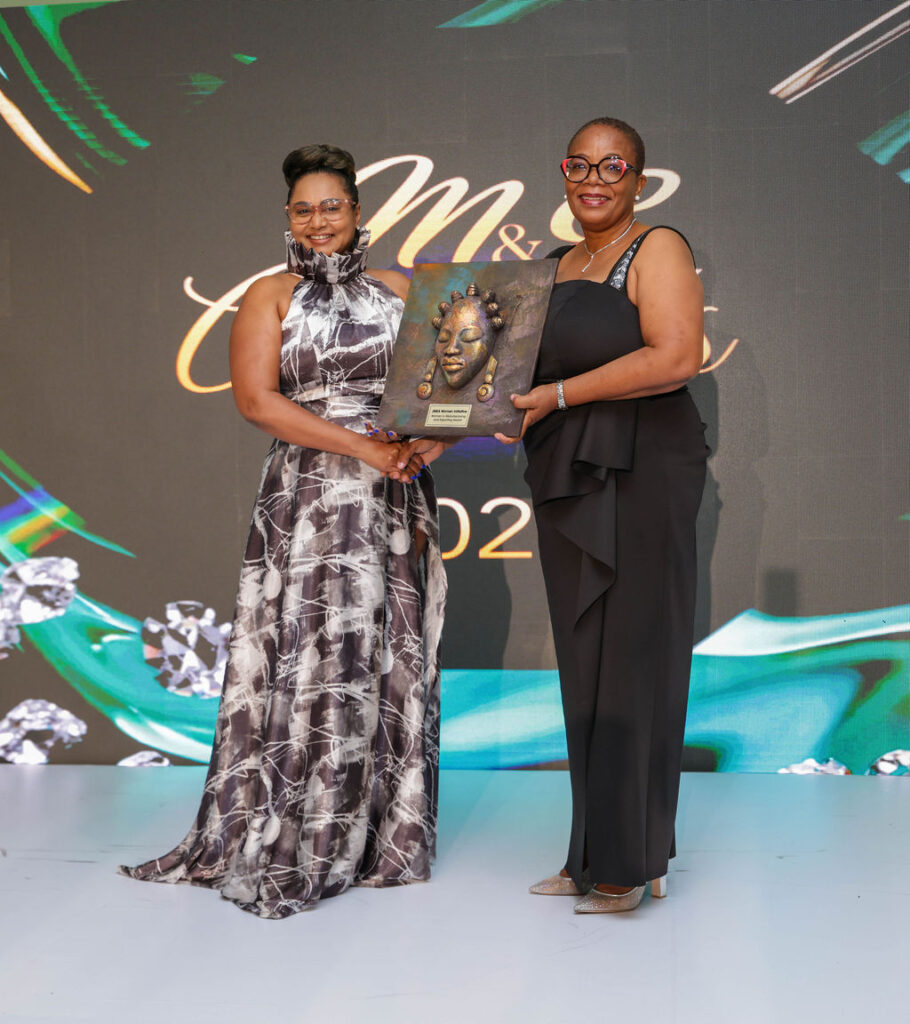 Pamela presents Nayana Williams, CEO and Founder of Lifespan Company Limited, with the Scotiabank Women Initiative – Women in Manufacturing Award at the JMEA Gala. (Photo: Contributed)