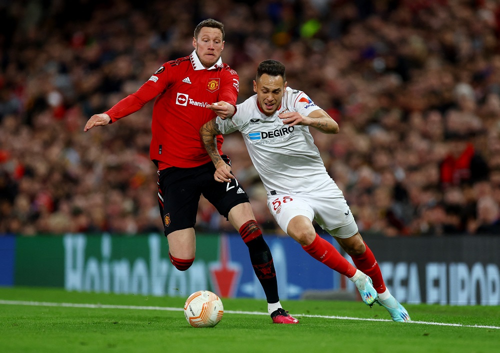 Marcel Sabitzer’s quickfire double in the first half put United in control of the tie but they failed to add a third goal and Sevilla pulled one back in the 84th minute when Jesus Navas’s shot pinged off the feet of Tyrell Malacia and keeper David de Gea into the net.