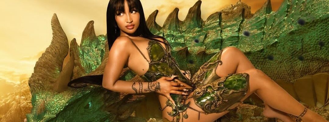 Throughout the promo for ‘Never Gets Late Here’, Shenseea can be seen riding or posing with a dragon. She stated in an interview with Billboard, “It’s just like me coming back stronger than ever because I’ve been through a lot for the past two years. I’m going to be riding a dragon…”