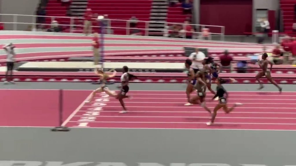 In the collegiate 60m, Antigua and Barbuda’s Joella Lloyd clocked a season-best 7.27s for third in what was a close race won by LSU’s Favour Ofili in 7.25s. Arkansas’ Jada Baylar split the two with 7.26s.