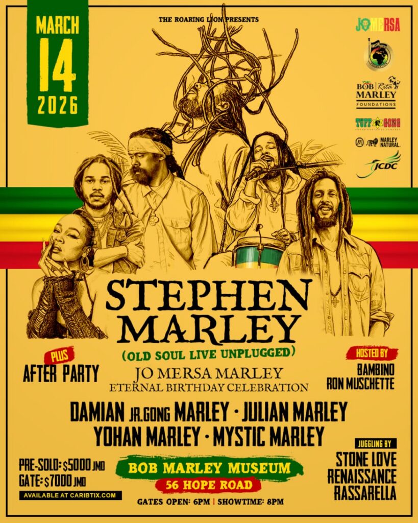 For the fourth year, the Marley Family will celebrate the life of Jo Mersa Marley. This March 14, 2026, the Roaring Lion presents Stephen Marley Old Soul Live Unplugged.